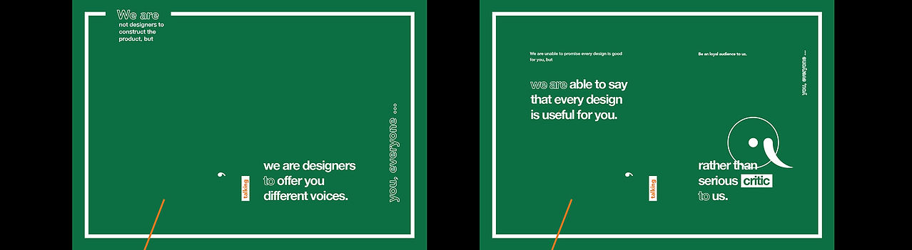 “We are a manifesto” is developed personally for individual statement with three target audiences, including employers, graphic designers and customers. Every chapter is arranged intentionally, beginning with the ‘we are’ collective for exhorting readers to follow, to listen or to believe it.